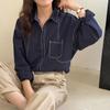 Frühling 2025 Einfarbig Sichtnaht Lässig Retro Revers Locker Geschnitten Petite Hemd