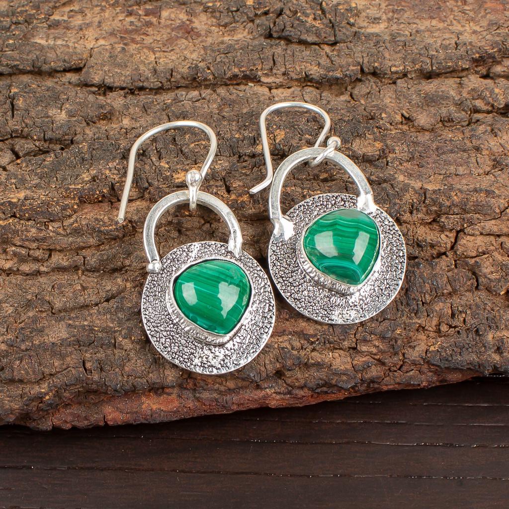Natural Malachite Gemstone 925 Sterling Silver Handmade Dangle Earrings 1.30" EE-63-29