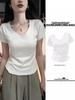 Entdecken Sie die ultimative Mischung aus Komfort und Stil mit diesem Damen Slim-Fit V-Ausschnitt Kurzarm Sommer T-Shirt. Gefertigt aus einem exquisiten Kunstseidenmaterial, das für sein luxuriöses Gefühl bekannt ist, bietet dieses Hemd sowohl Eleganz als auch Atmungsaktivität.. Das unifarbene Muster und der schmeichelhafte V-Ausschnitt machen es zu einer vielseitigen Ergänzung für jede Garderobe, ideal für verschiedene Anlässe.. Sein figurbetontes Design und die kurzen Ärmel sorgen für einen schicken und modernen Look, perfekt, um in der Sommerhitze kühl und stilvoll zu bleiben.