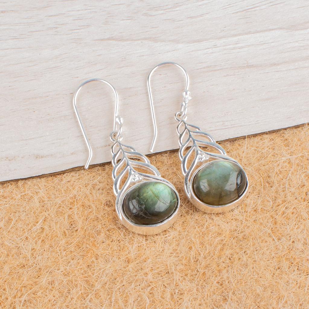 Natürlicher Labradorit Edelstein 925 Sterlingsilber Schmuck Stilvolle Ohrringe 1,64" CE-1-19