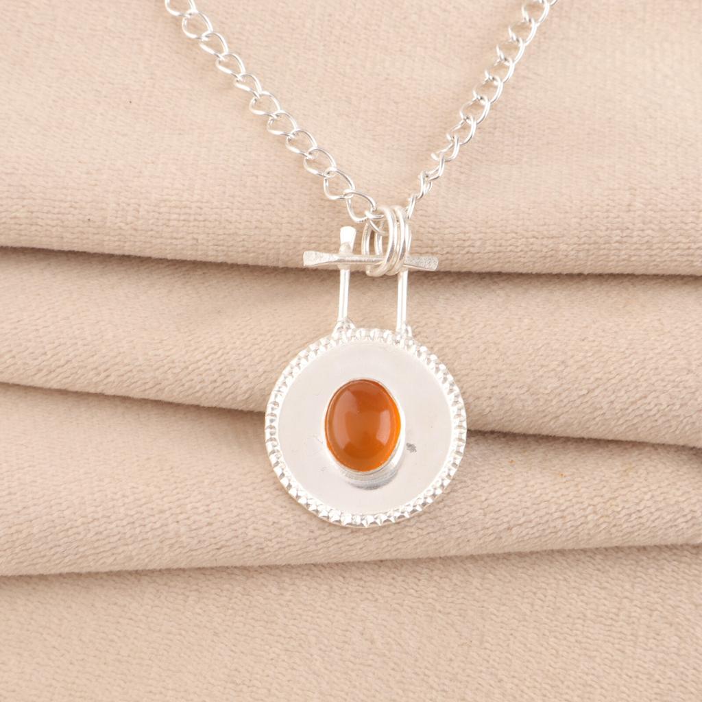 Natürlicher Karneol Edelstein 925 Massivsilber Schmuck Handgefertigter Runder Anhänger 1,4" PP-57-31