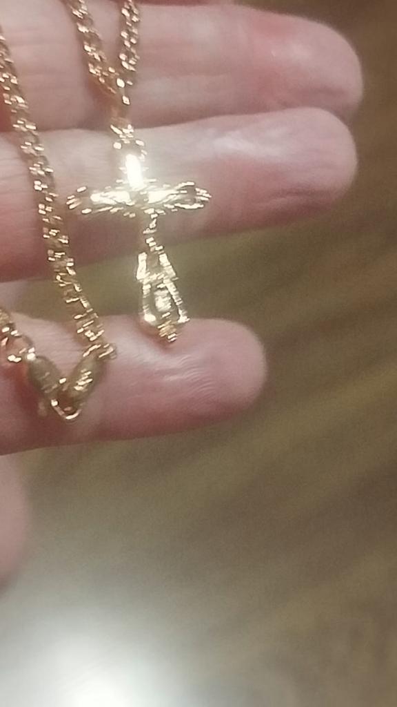Das Kreuz ist nicht klein, mittelgroß, schön und die Kette ist ebenfalls klasse.