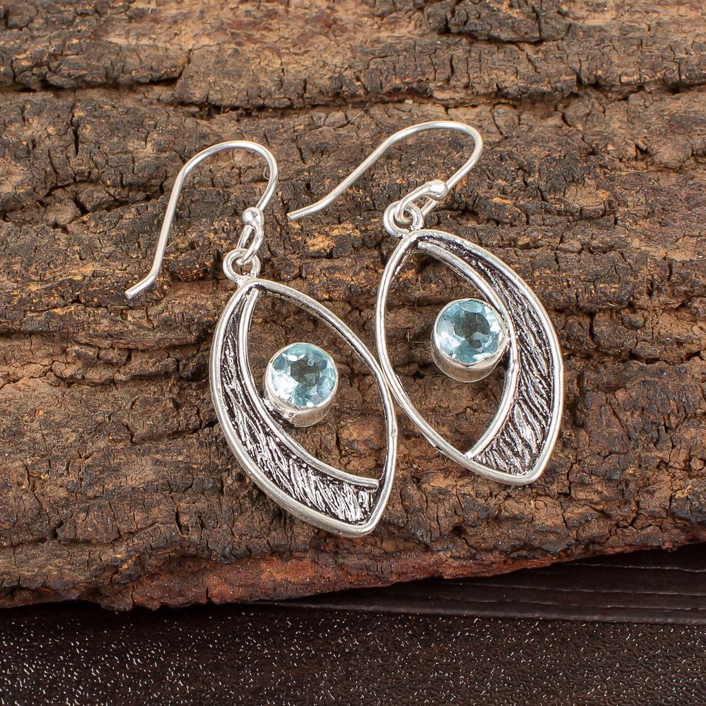 Himmelblauer Topas Edelstein 925 Sterlingsilber Geschenk Schmuck Handgefertigte Ohrringe 1.60" EE-61-8