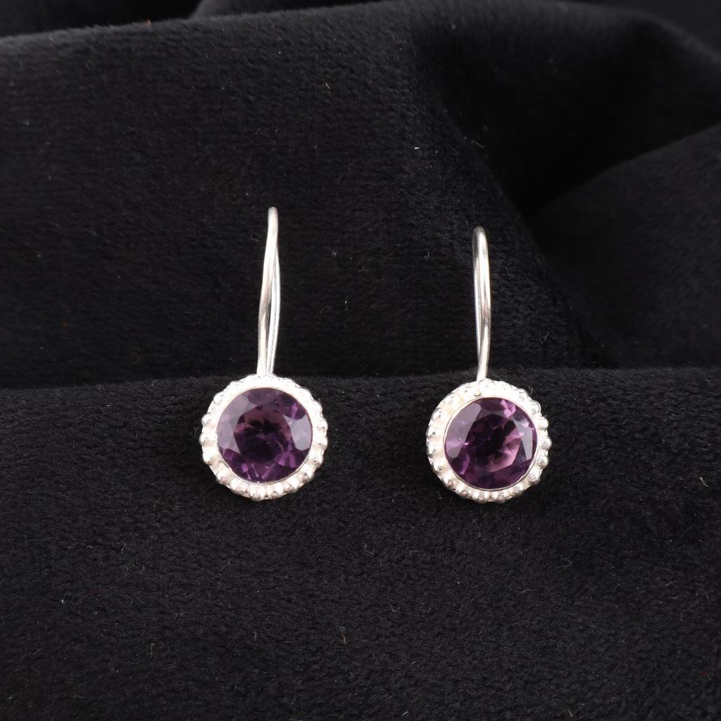 Amethyst Edelstein 925 Sterlingsilber Schmuck Handgefertigt Tropfen/Hängeohrringe 0,93" EE-177-12