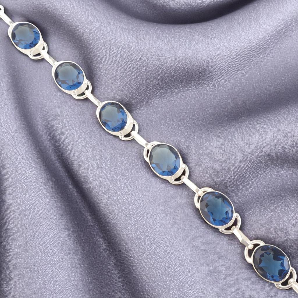 Seltener London Blue Topas Edelstein 925 Sterlingsilber Schmuck Handgefertigtes Armband 8" RB-10-8