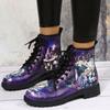 Herbst neue Cartoon-Druckmuster runder Kopf flacher Absatz Schnürstiefel Kinderstiefeletten große Größe