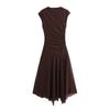 2025 Spring Pleated Tulle Stand Collar Midi Dress for Women - European and American Style