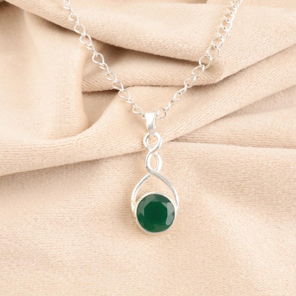 Grüner Onyx Edelstein 925 Sterlingsilber Schmuck Handgefertigter Boho Anhänger für Damen CP-25-20
