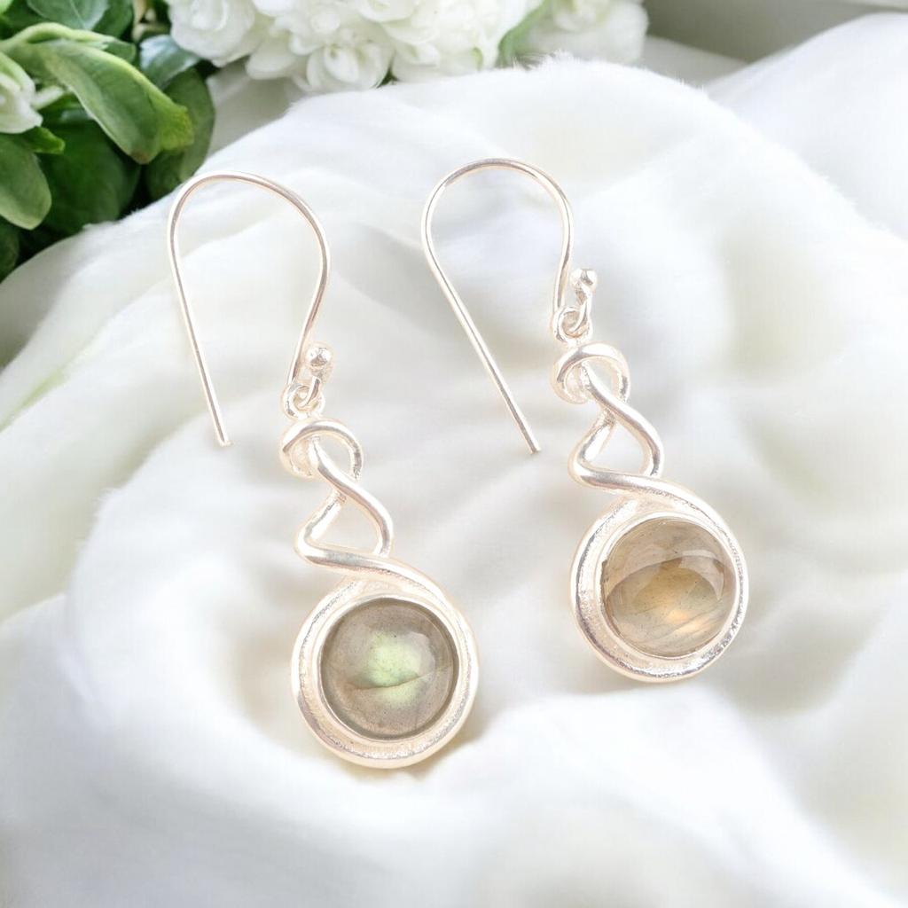 Natürlicher Labradorit Edelstein 925 Sterlingsilber Handgefertigter Schmuck Ohrringe CE-14-21