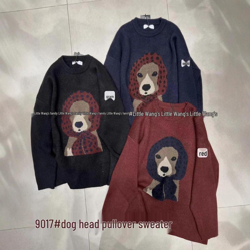 Xiao Wang's 9017 Winter Korean Style Plus Size Casual Printed Crew Neck Sweater