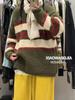 Xiao Wangs Winter Koreanischer Stil Übergröße Lässiger Colorblock Gestreifter Pullover