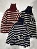 Xiao Wang's 73080 Winter Korean Loose Fit Plus Size Graphene Warm High Neck Striped Shirt