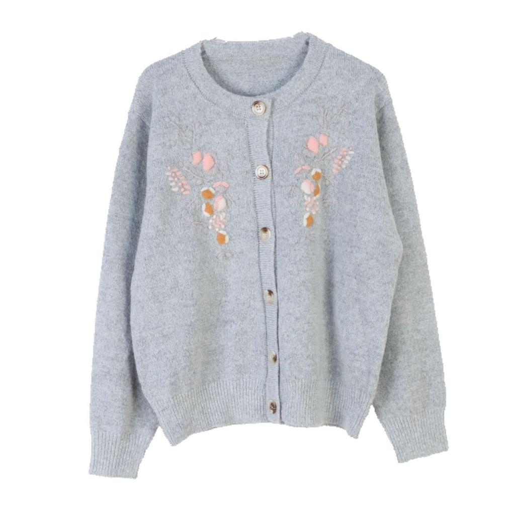 Yang Mi Style Floral Embroidery Knit Cardigan: Versatile Korean Fashion Sweater for Women (Autumn/Winter)