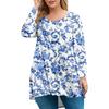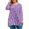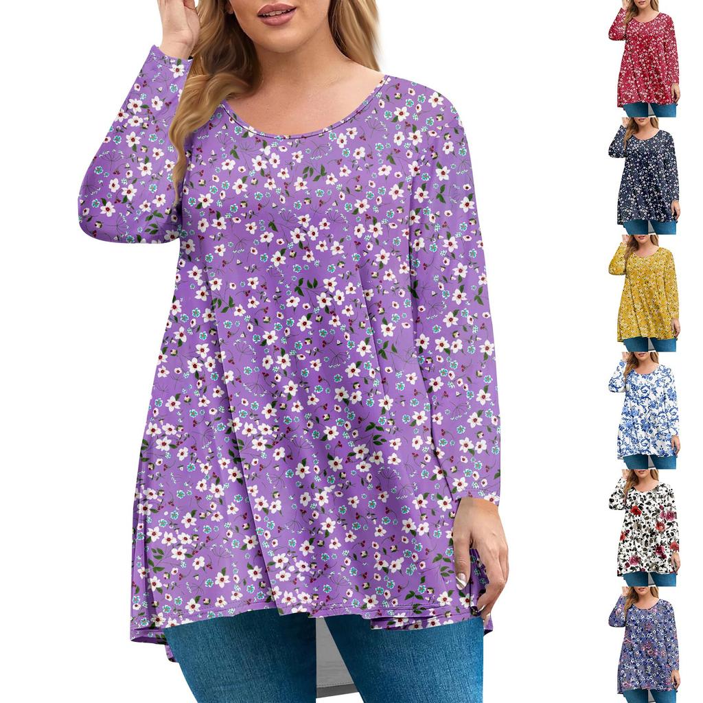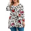 Damen Übergröße Oberteil, Gartenkragen Langarmhemd, Modisches Blumenmuster Freizeit-Top