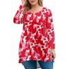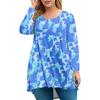 Damen Übergröße Oberteil, Gartenkragen Langarmhemd, Modisches Blumenmuster Freizeit-Top