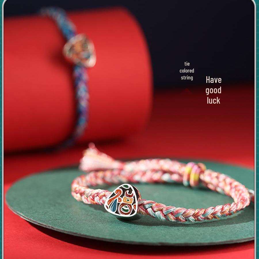Drachenknoten S925 Silber Fu Glücksbringer Buntes Seil Armband - Frühlingsfest Geschenk für Studenten & Paare