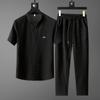 Sommerliches, dünnes Eisseiden-Herren-Freizeit-T-Shirt mit kurzen Ärmeln und Cropped-Hose, 2-teiliges Set