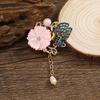 Handgefertigte Retro-Blumen- und Perlenquasten-Brosche: Schmetterling Cheongsam Anti-Exposure-Nadel für Pullover