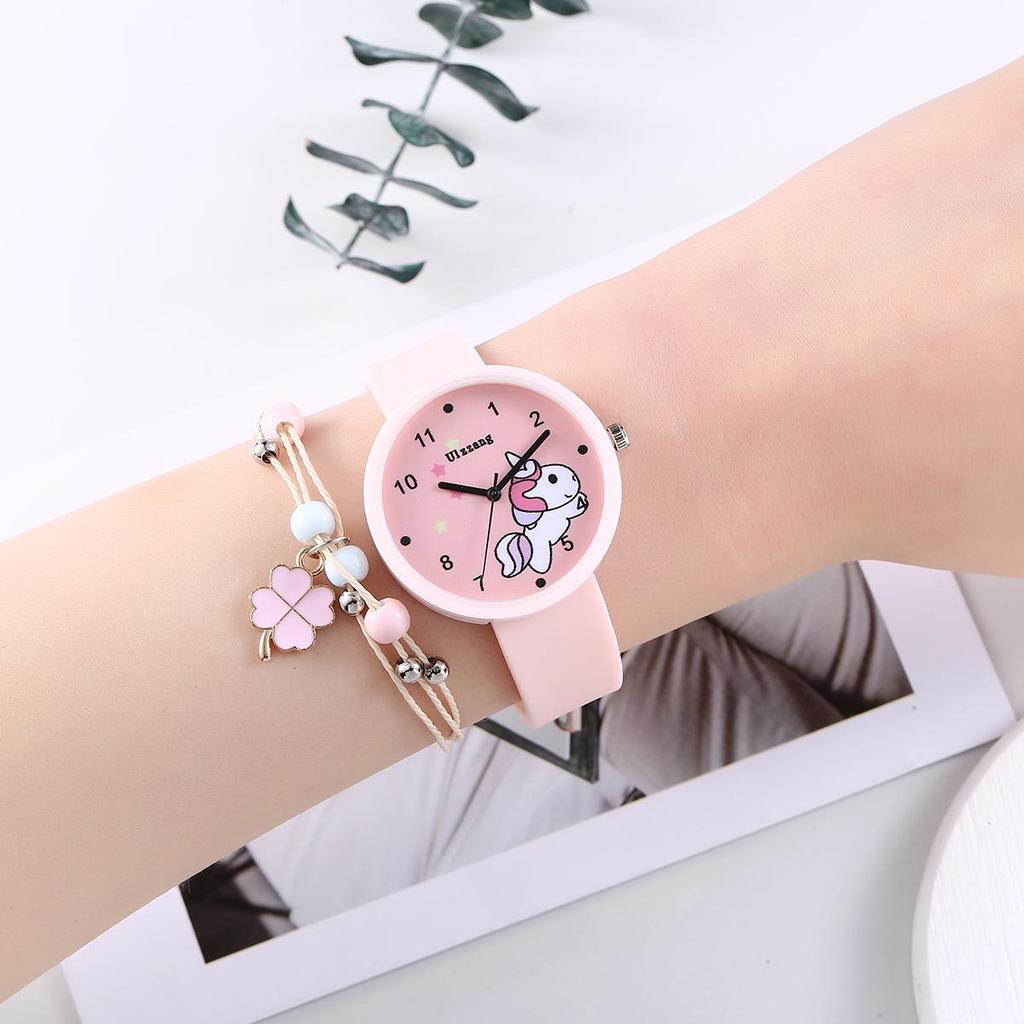 Stilvolles minimalistisches Einhorn Silikon Quarzuhren- & Armband-Set für Mädchen (2 Stück)