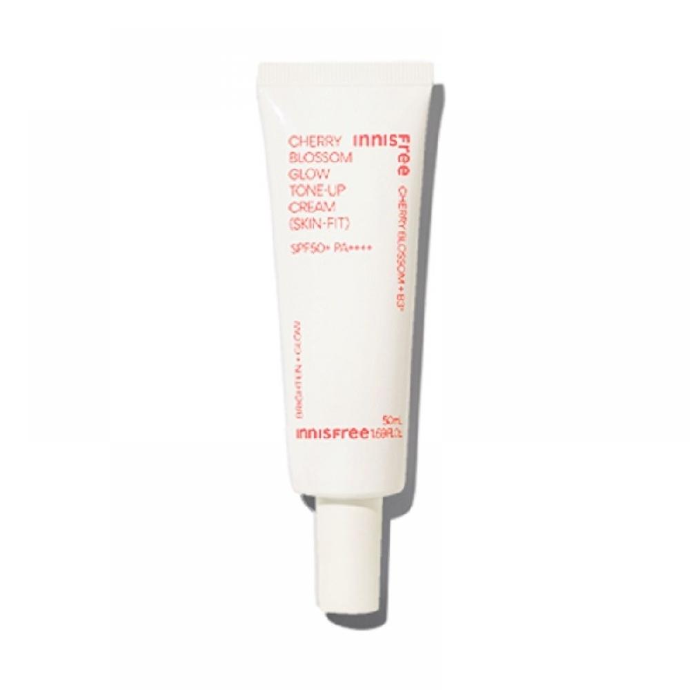 The Cherry Blossom Glow Skin Fit Tone-Up Cream SPF50 PA+++ 50ml is a tone-up cream that brightens the skin. It contains Jeju cherry blossom leaf extract to give the skin a lively appearance. Niacinamide helps improve skin condition, and the pink tone-up stem fit formula allows for natural tone enhancement. This cream should be stored out of reach of children and away from high or low temperatures and direct sunlight.