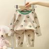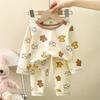 100% Baumwolle Kinder Thermounterwäsche Set Langarm Hose Weiche Schlafbekleidung Hausbekleidung Cartoon-Druck Bequem A Klasse Sicherheit