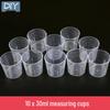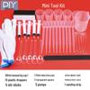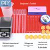 DIY Epoxid-Werkzeugset mit Handschuhen, Messbechern, Waage, Pinzetten, Tropfer, Schleifpapier, Politur und Stanze.