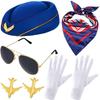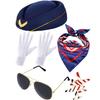 Cosplay Kostüm: Halloween Flugbegleiterin mit Brille, Hut, Handschuhen und Schal