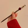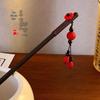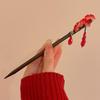 Traditionelle chinesische rote Blume Quaste Haarnadel für Hanfu & Cheongsam