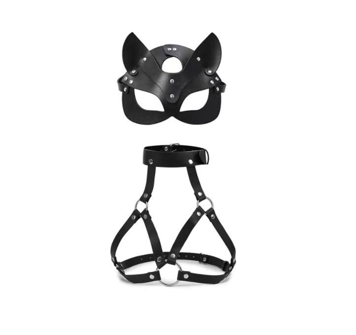 Erotisches Leder Bondage Halsband und Flirtbekleidung