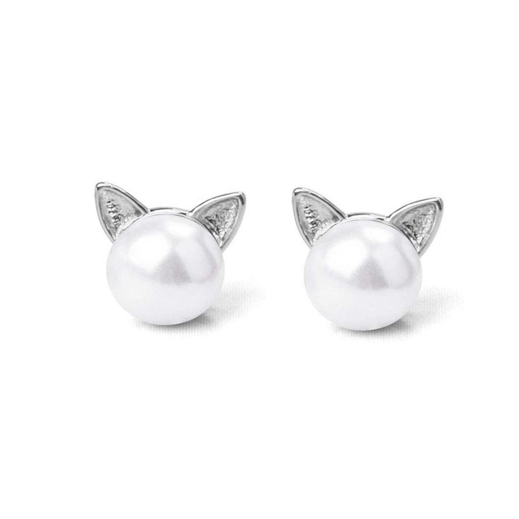 Rockyu Earrings for Popular Small Cute Pearl Small Cat Girly Set for Both Cutest Cat Fashion Accessories Women, Earrings, Cat, Hypoallergenic,
