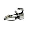 Neue Sandalen mit eckigem Kopf, leerer Seite, Retro-Metall, niedrigem Absatz, Ein-Wort-Schnalle, Rückentasche, Einzelne Schuhe, Damenmode