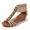 Neue Vintage Keilabsatz Sandalen Damen Böhmische Urlaub Nach Reißverschluss Zehenfrei Römische Schuhe