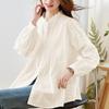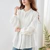 Besticktes weißes Hemd für Damen Langärmelige Frühlingskleidung Neues Design Akkordeonplissierte Oberteile Stehkragenhemd