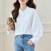 Blau gestreiftes Hemd für Damen Langärmlig Frühjahrskleidung Neues Rundhals-Oberteil Koreanischer Stil Modisch Vielseitiges Hemd