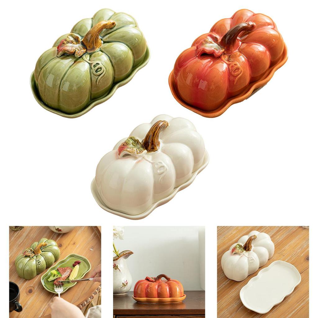 【Charmantes Design】: Dieser Keramikteller mit Deckel hat eine Kürbisform und verleiht Ihrem Esstisch eine einzigartige Schönheit.