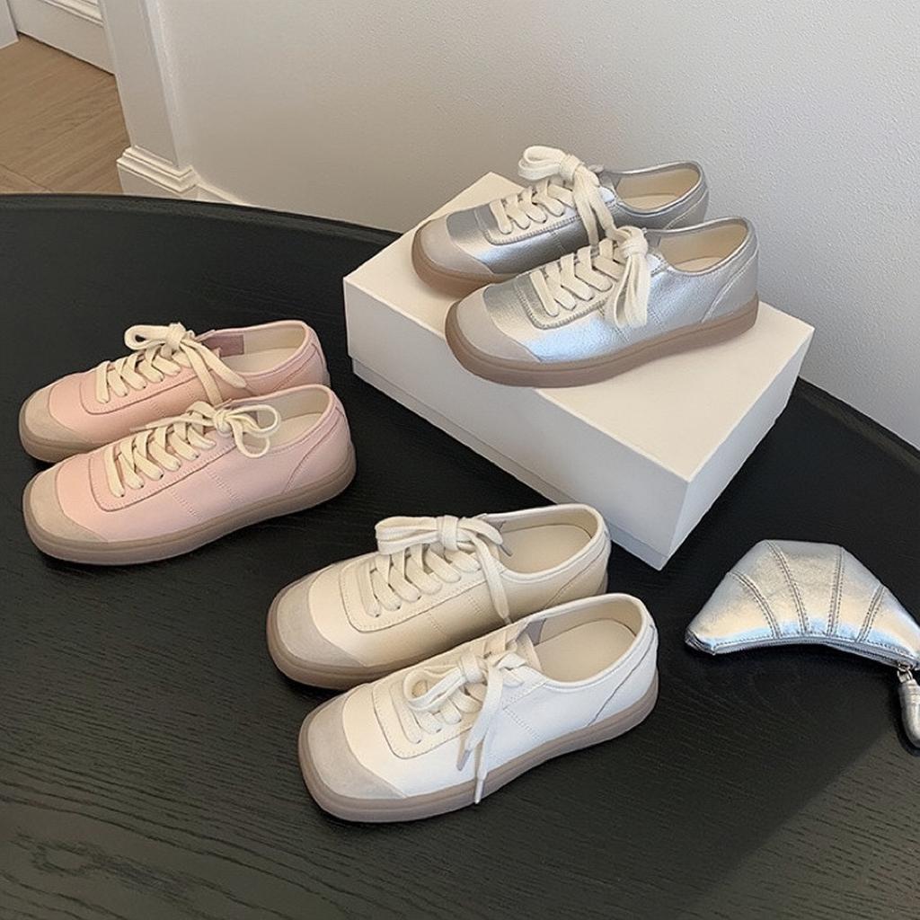 Rindslederversion~ Su Yinyin gleiche koreanische Retro-Schnürung Splicing Casual Sportschuhe Damen Board Schuhe Plateau weiße Schuhe