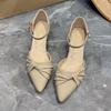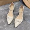 Damen High Heels neue koreanische Version dicker Absatz spitz plissiert Einzelne Schuhe Ein-Knopf Mode Sandalen