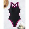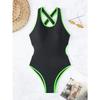 Sexy Neon Grün Schwarz Patchwork Bademode Damen Ausgeschnitten Überkreuzter Rückenfreier Badeanzug Schlank Bauchkontrolle Einteiliger Badeanzug 2025