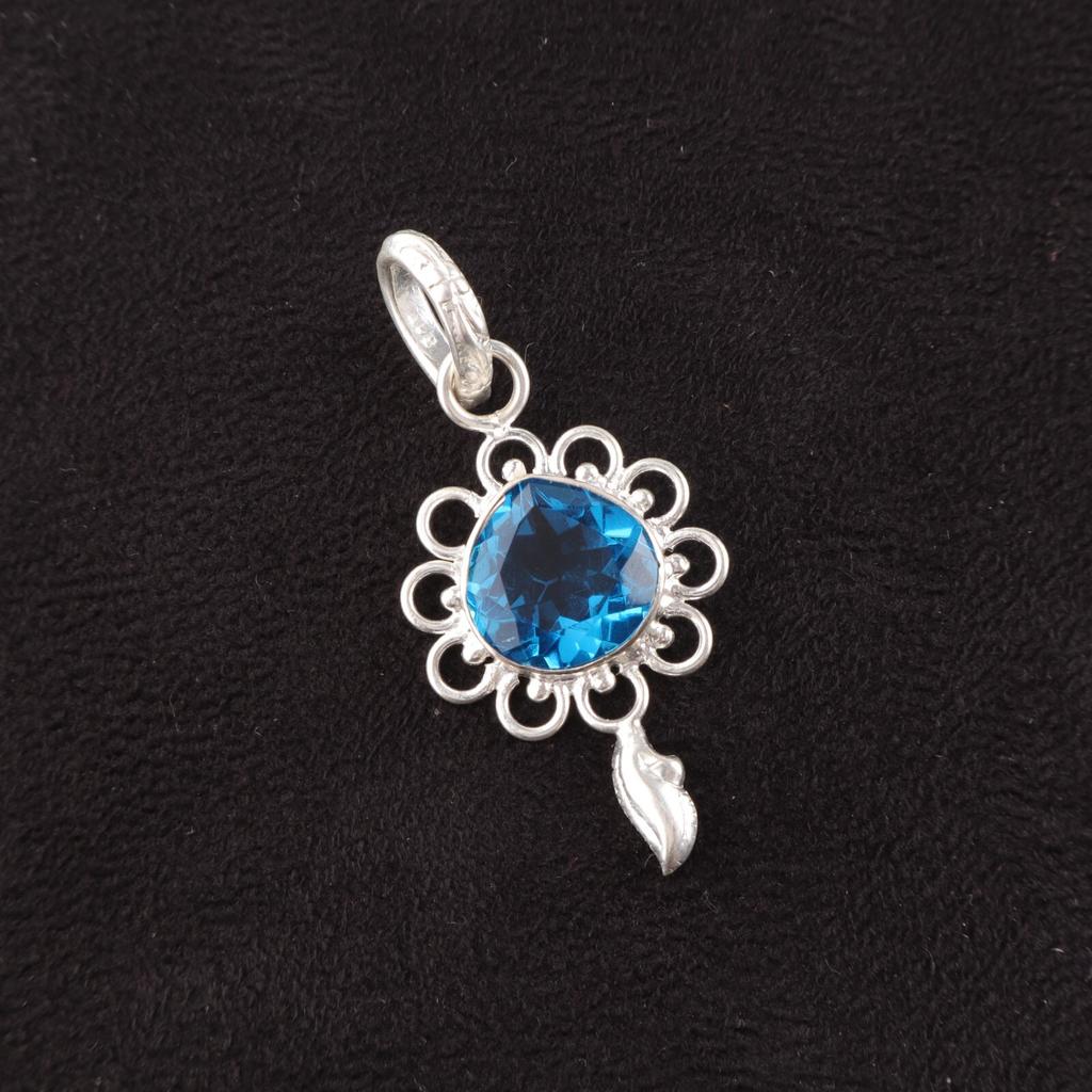 Heart Natural Swiss Blue Topaz 925 Silver Handcrafted Handmade Pendant Jewelry PP-4-2