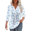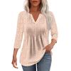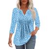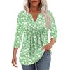 Modisches, lässiges T-Shirt mit plissiertem V-Ausschnitt und einfarbigen Siebenviertelärmeln für Damen