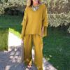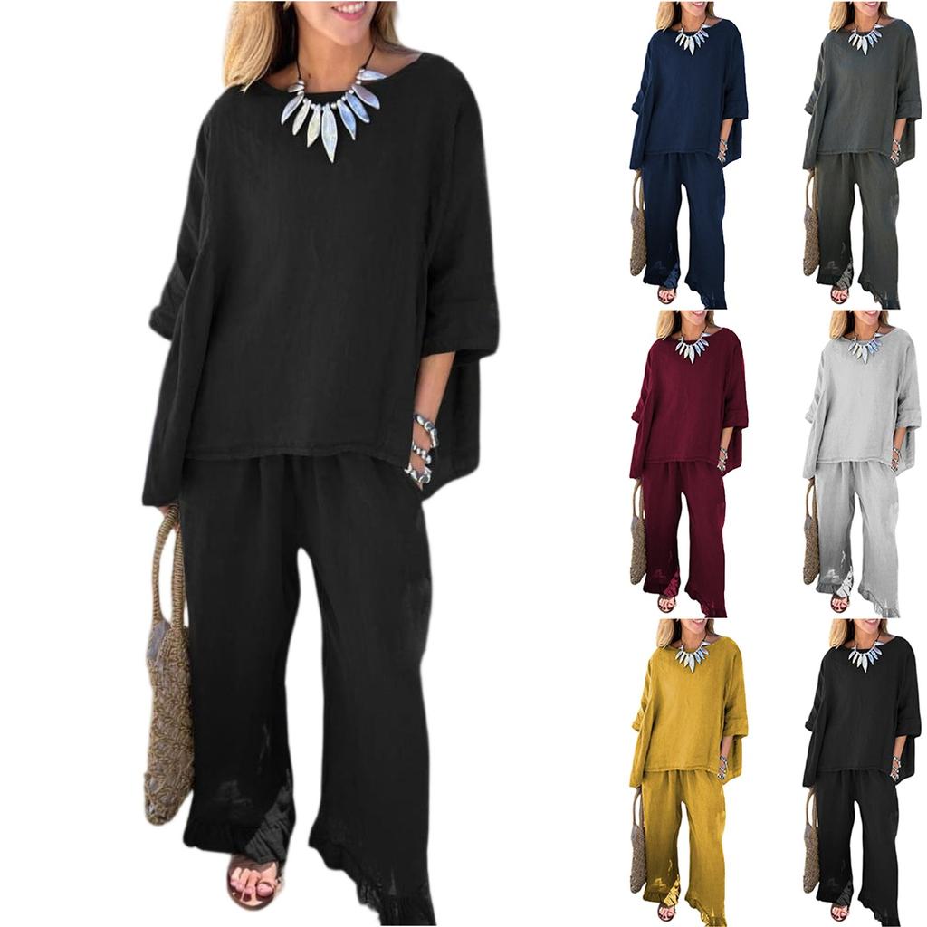 Damen Locker Bequem Lässig Modisch Baumwolle Und Leinen Einfarbig Ellbogenärmeliges Oberteil Und Hose Zweiteiliges Set