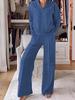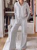 Herbstliches lässiges V-Ausschnitt Langarm Loose Oberteil, Weitbeinige Hose Zweiteiler