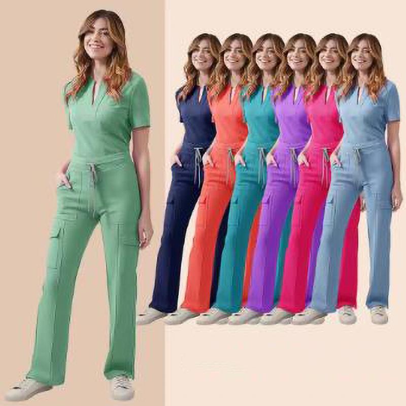 Medizinische Damen Krankenschwester Scrub Set Taschenhose OP-Saal Schönheitssalon Arbeitskleidung