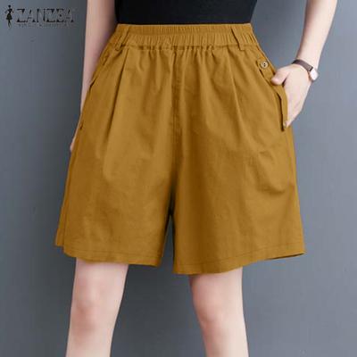 ZANZEA Damen Lässige Elastische Taille Lockere Karomuster Sommer-Shorts
