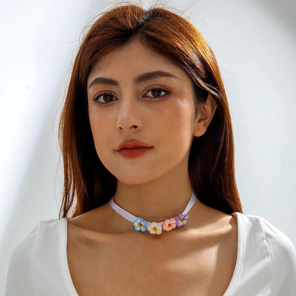1 STÜCK Strandurlaubsstil Bunte Harz Ei Blume Halskette für Damen Schmuck, Sommerlicher Frischer Stil Choker-Halskette