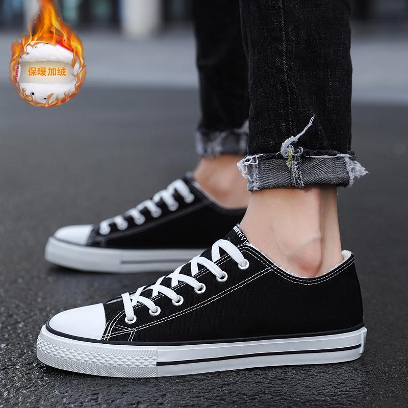 Herbst- und Winter Samt Paar Baumwollschuhe Koreanische Version vielseitig warm niedrig geschnittene Canvas-Schuhe männliche Studenten Samt Baumwollschuhe Mode