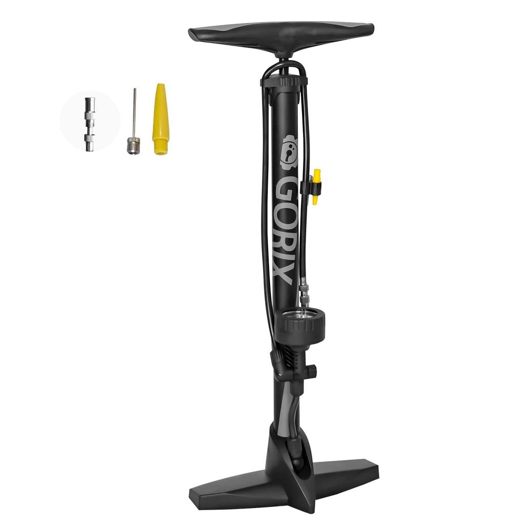 GORIX Bicycle Pump with Gauge [Compatible with American, French, and British Valves] (Matte Black) GX-33P
