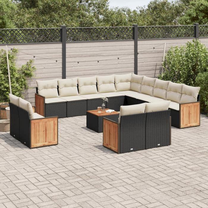 VidaXL Salon de Jardin avec Coussins 14 pcs, Canapés de Terrasse, Ensemble de Meubles de Patio, Mobilier d'Extérieur, Noir 3228212