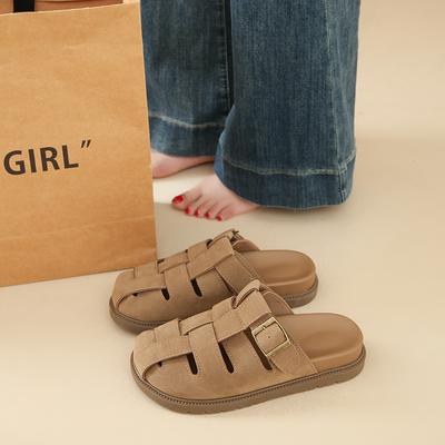 Neue Taschenkopf-Plateau-Sandalen für Damen aus echtem Leder, Retro, vielseitig, für den Außenbereich, Ein-Fuß- und Halbschuhe