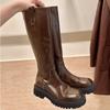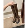 Schuhschrumpfung Pferdeleder Runde Spitze Dicke Sohle Dicker Absatz Skinny Mittel Lang Ritterstiefel Damen
